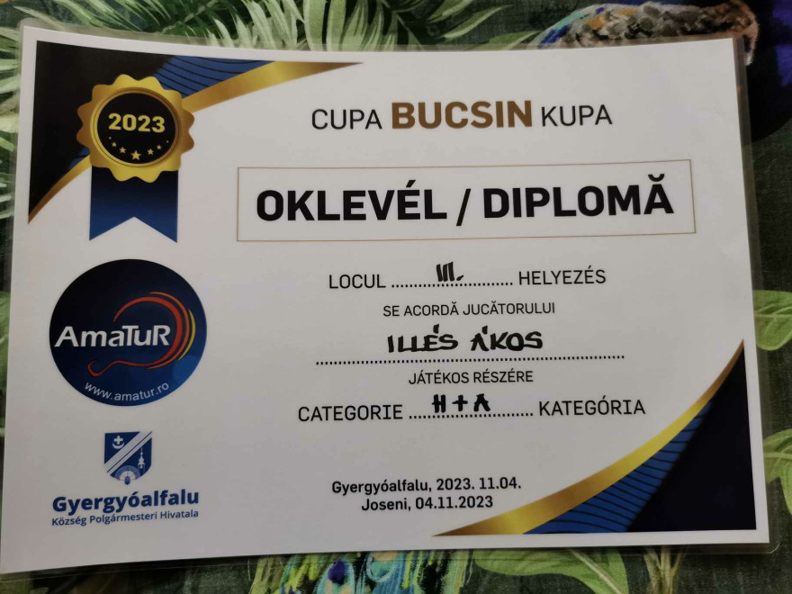 Ebben a kategóriában Illés Ákos szintén szerepelt, aki nagyon jó teljesítménnyel sikerül a dobogó harmadik fokára felállnia. Egy újabb jó teljesítmény Ákos részéről miután az előző héten Kolozsváron a nyolcaddöntőig jutott. Gratulálunk Ákos!